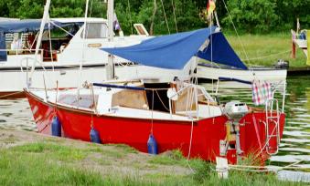 Kiel ist mit Primer und Antifouling versehen und hat neue Bolzen.